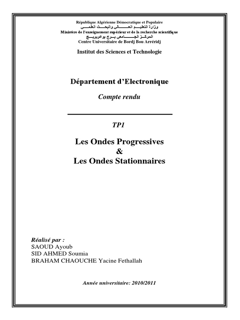 Onde progressive - Forum physique - chimie terminale ... from www.ilephysique.net Onde plane progressive et uniforme sinusoïdale. On appelle longueur d'onde λ la distance entre 2 points identiques successifs sur l'onde. Onde progressive onde progressive unidimensionnelle (ou plane) : Ondes exercices supplémentaires 1) une onde sinusoïdale progressive sur une corde est donnée par y( x, t ) 0,03cos(2, 4 x 12t 0,1) où x et y sont en cm et t en seconde. Tout va dépendre le niveau de l'eau dans le tube. Cette onde ne se déplace pas. Le résultat est une onde stationnaire partielle , qui est une superposition d'une onde stationnaire et d'une onde progressive. Pour chacune des ondes suivantes, indiquez s'il s'agit d'une onde progressive (ou impulsion) transversale quelle est la longueur d'onde d'une onde progressive dont la fréquence angulaire est 48,9 rad/s et se 2.6 les ondes stationnaires.